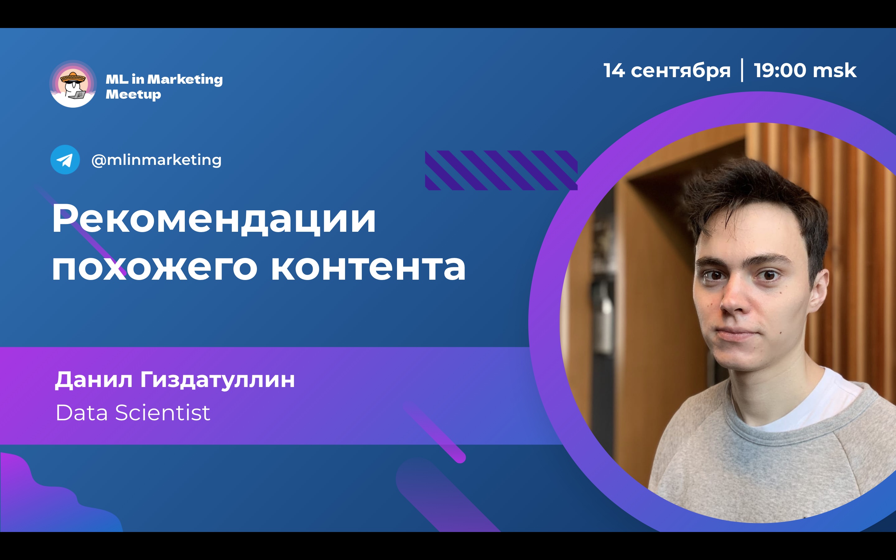>> Описание: В рекомендательных системах есть понятия пользователя и айтема. Типичная задача рекомендаций рекомендации айтемов пользователям, но также одной из важных задач является задача рекомендации айтемов к айтемам. В докладе рассмотрим несколько вариантов её решения: от использования коллаборативной фильтрации до модели ранжирования.